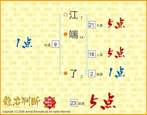 江端了さんの総運は23画の5点!