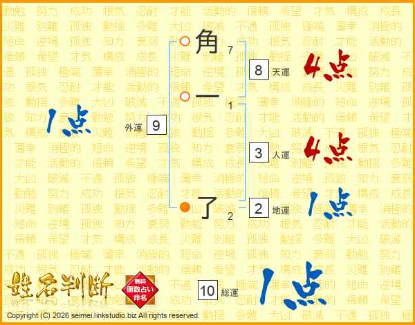 角一了さんの総運は10画の1点!