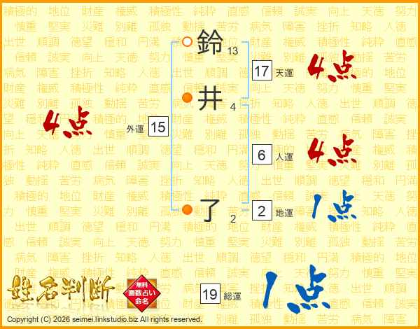 鈴井了さんの総運は19画の1点!