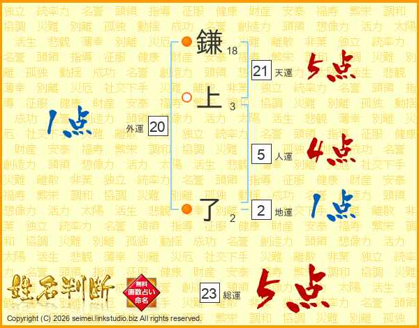 鎌上了さんの総運は23画の5点!