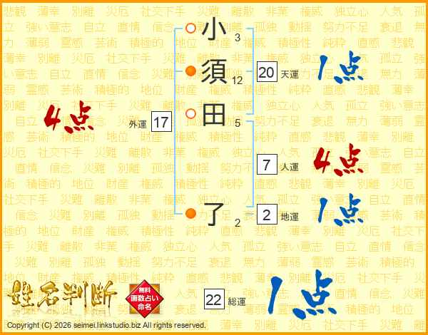 小須田了さんの人運は7画の4点