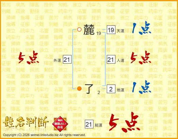 麓了さんの人運は21画の5点!