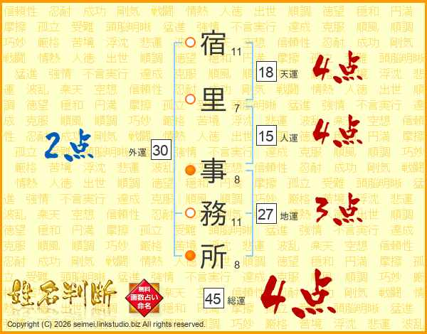 宿里事務所さんの総運は45画の4点!
