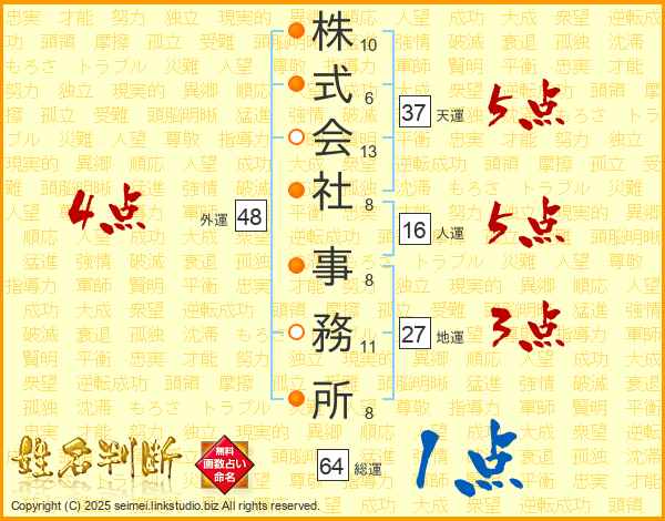 株(10画)式(6画)会(13画)社(8画) 事(8画)務(11画)所(8画)