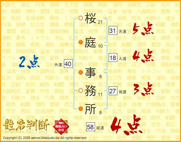 桜(21画)庭(10画) 事(8画)務(11画)所(8画)