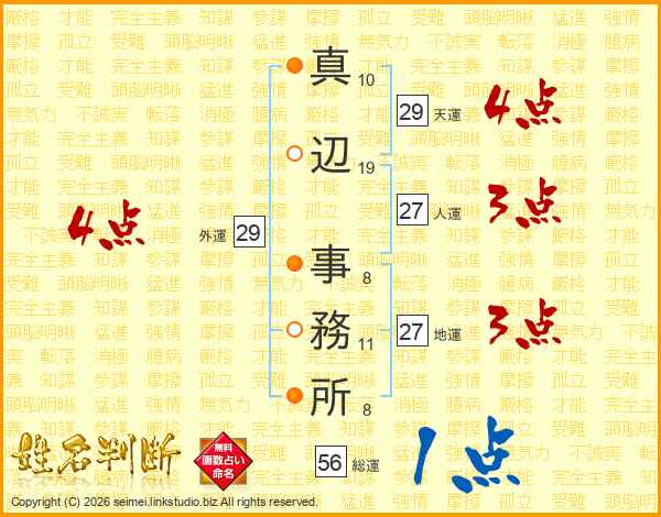 真辺事務所さんの人運は27画の3点!