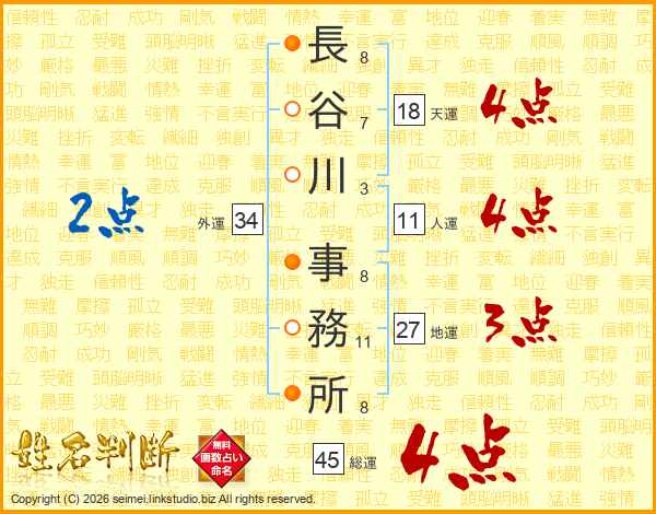 長谷川事務所さんの総運は45画の4点!