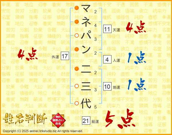 マネパン二三代さんの総運は21画の5点!