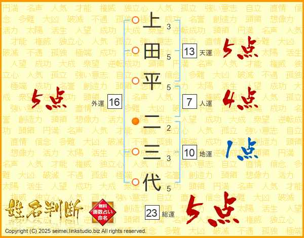 上田平二三代さんの総運は23画の5点!