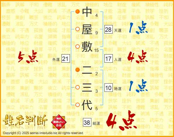 中屋敷二三代さんの総運は38画の4点!