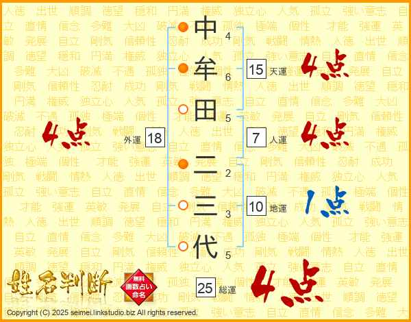 中牟田二三代さんの総運は25画の4点!