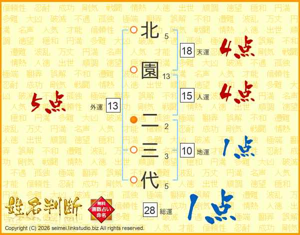 北園二三代さんの天運は18画の4点!