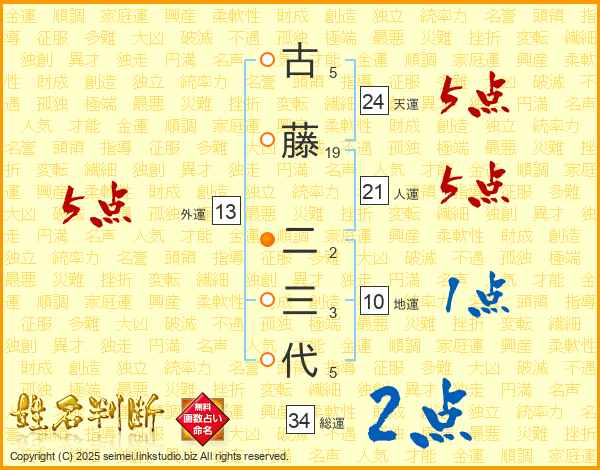 古(5画)藤(19画) 二(2画)三(3画)代(5画)