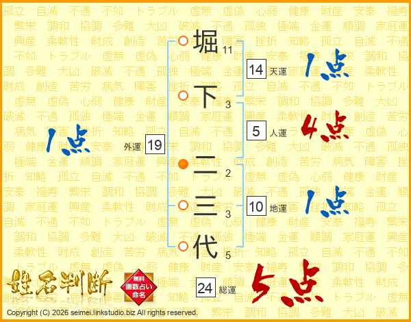 堀下二三代さんの天運は14画の1点!