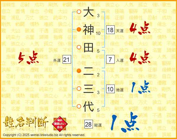 大(3画)神(10画)田(5画) 二(2画)三(3画)代(5画)