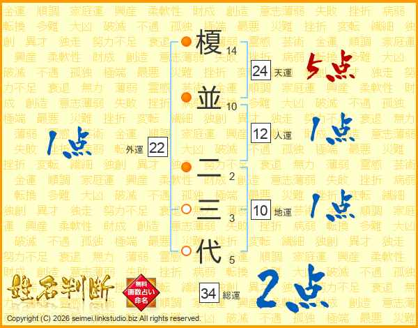 榎並二三代さんの総運は34画の2点!