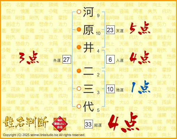 河原井二三代さんの総運は33画の4点!