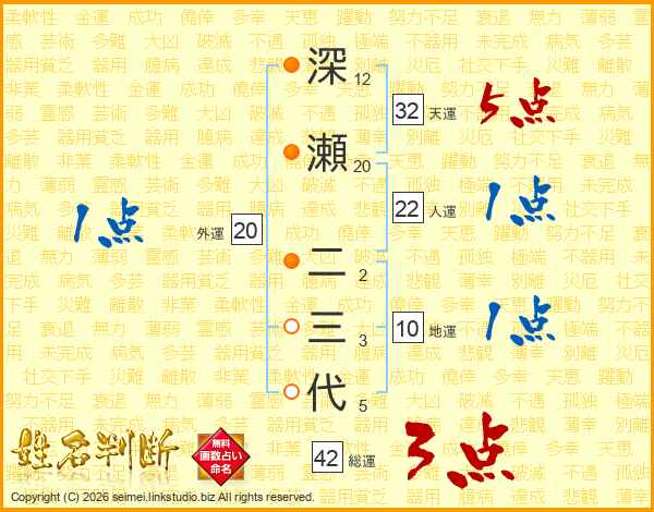 深瀬二三代さんの天運は32画の5点!