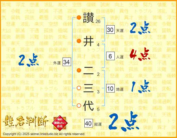 讃(26画)井(4画) 二(2画)三(3画)代(5画)