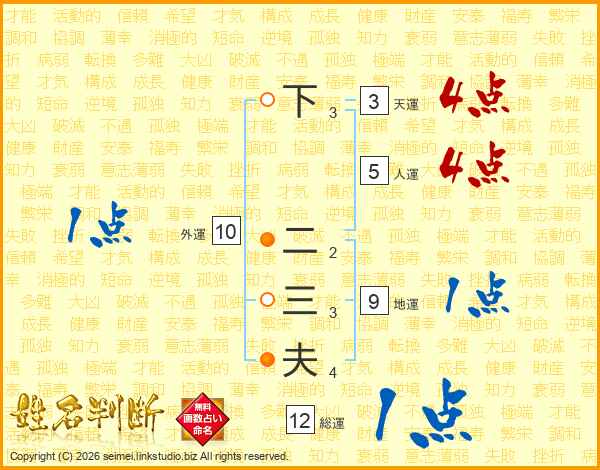下二三夫さんの総運は12画の1点!