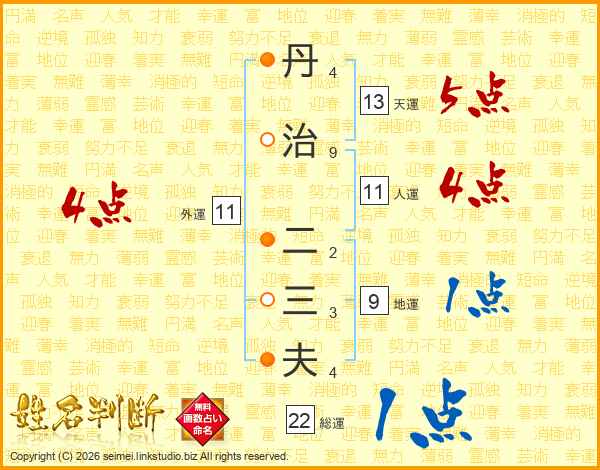 丹治二三夫さんの天運は13画の5点!