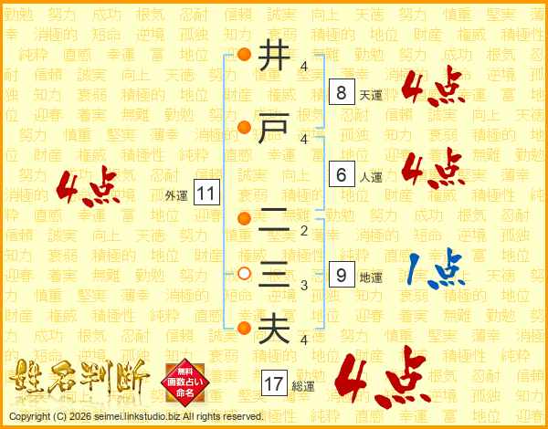 井戸二三夫さんの総運は17画の4点!