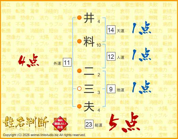 井料二三夫さんの総運は23画の5点!