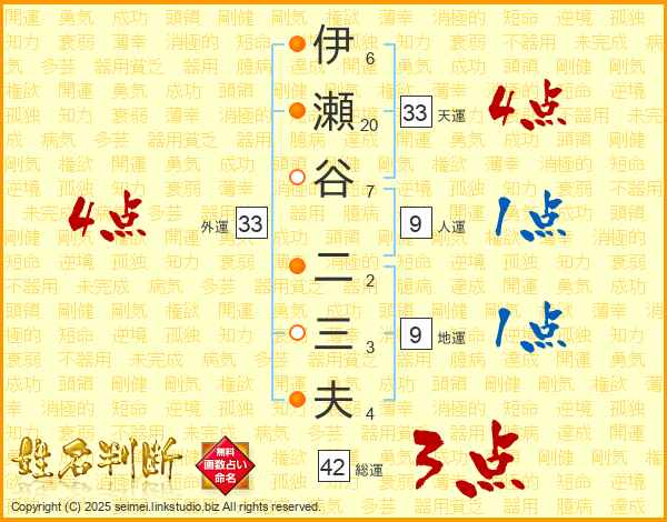 伊瀬谷二三夫さんの天運は33画の4点!