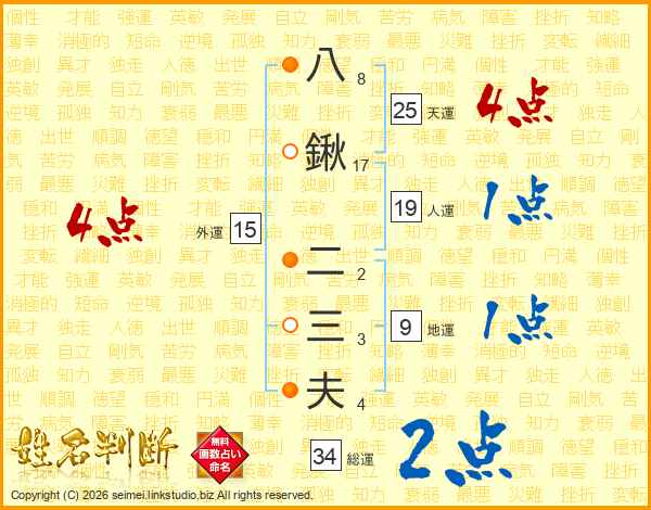 八鍬二三夫さんの総運は34画の2点!