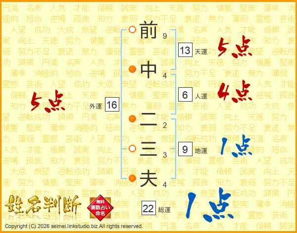 前中二三夫さんの天運は13画の5点!