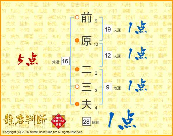 前原二三夫さんの総運は28画の1点!