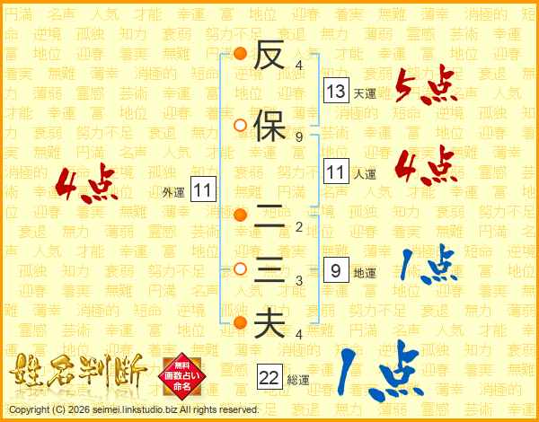 反保二三夫さんの人運は11画の4点!