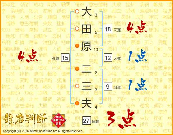 大(3画)田(5画)原(10画) 二(2画)三(3画)夫(4画)