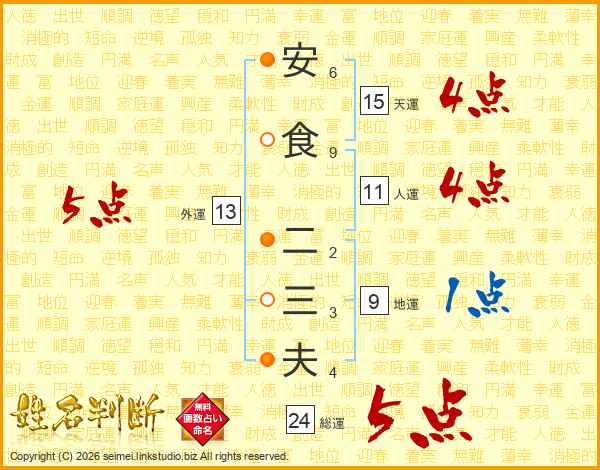 安食二三夫さんの総運は24画の5点!