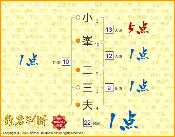 小(3画)峯(10画) 二(2画)三(3画)夫(4画)