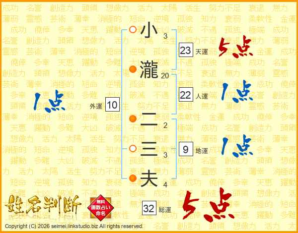 小瀧二三夫さんの総運は32画の5点!