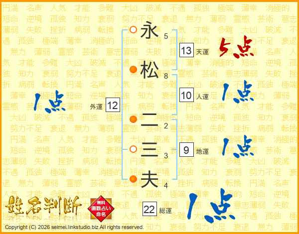 永松二三夫さんの総運は22画の1点!