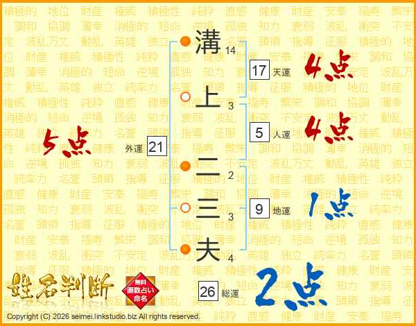 溝上二三夫さんの天運は17画の4点!