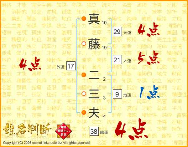 真藤二三夫さんの総運は38画の4点!