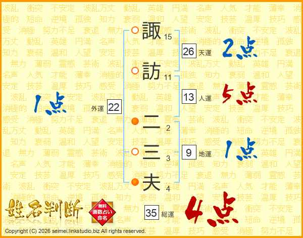 諏訪二三夫さんの天運は26画の2点!