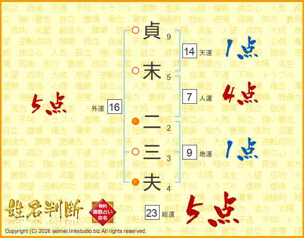 貞末二三夫さんの総運は23画の5点!