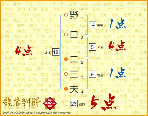 野口二三夫さんの天運は14画の1点!