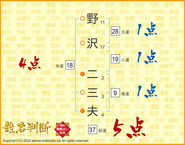野沢二三夫さんの総運は37画の5点!