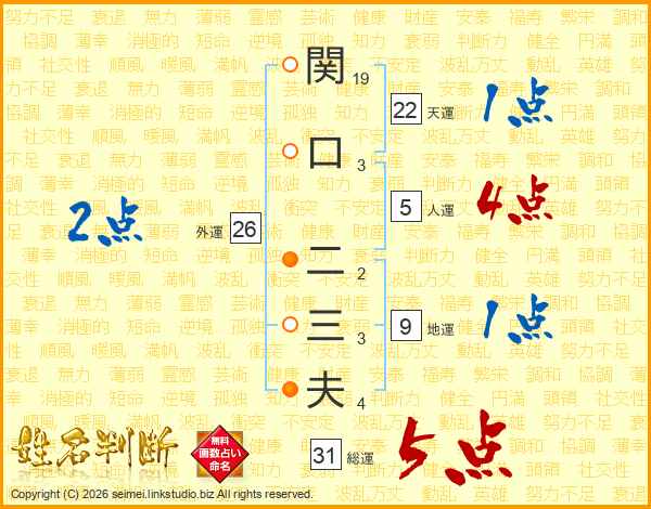 関口二三夫さんの総運は31画の5点!