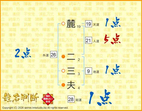 麓二三夫さんの総運は28画の1点!