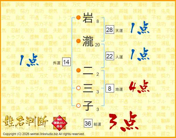 岩瀧二三子さんの総運は36画の3点!