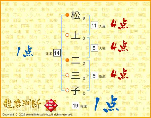 松(8画)上(3画) 二(2画)三(3画)子(3画)