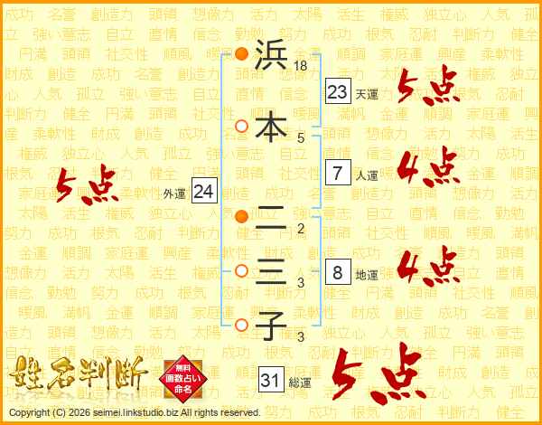 浜本二三子さんの総運は31画の5点!