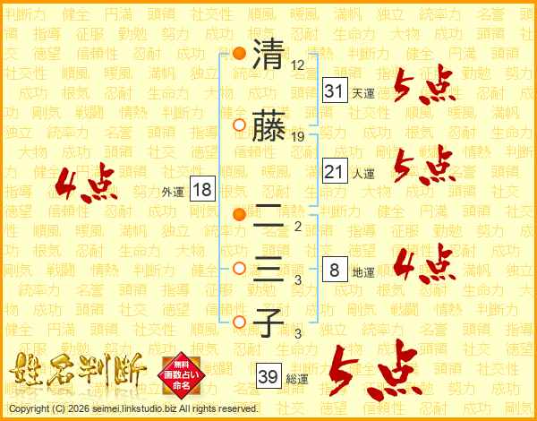 清藤二三子さんの総運は39画の5点!