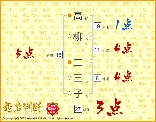 高柳二三子さんの総運は27画の3点!